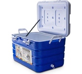 Контейнер изготовлен из прочного пластика, его можно использовать как стул, выдерживающий вес до 100 кг. Крышка контейнера фиксируется защелкиванием, что предотвращает ее нежелательное открытие. Для удобства транспортировки на термоконтейнере имеются две боковые ручки. В термоконтейнере предусмотрен слив конденсата через специальное сливное отверстие. Характеристики •Объем: 60 литров •Размер внешний (см): 43(Г)*63(Ш)*40(В) •Размер внутренний (см): 37,4(Г)*55,6(Ш)*31,4(В) •Вес: 4,9 кг •Герметичная конструкция •Ударопрочный корпус •Экологически чистые материалы •Длительная поддержка температуры •Встроенный слив для конденсата •Прочный пластик выдерживает нагрузку до 100кг •Прослойка из пенополиуретана •Рекомендуется использовать с аккумуляторами холода AVS (10-15% от объема) Материал: пластик, пенополиуретан Комплектация: Термоконтейнер Инструкция Аккмулятор холода 2шт Крепежный винт 2шт Состав: Пластик, пенополиуретан