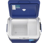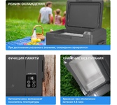 Автохолодильник компрессорный • цвет Темно-синий • сенсорный LED дисплей • температура в режиме морозильника от -18 до 0 °C • температура в режиме холодильника от 0 до +15 °C • работа от сети/прикуривателя автомобиля/аккумулятора • температура отображается в градусах Цельсия, Фаренгейта • адаптер 12/24/220В в комплекте • возможность выбора уровня защиты разряда аккумулятора машины • разделочная доска в комплекте • режим быстрого охлаждения • режим экономии энергии • габариты 41,2х55,8х36,2см • объем 30л