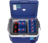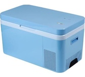 Мобильный холодильник компрессорный. габариты 34,5х58х32,5см. Температура хранения от -18 до +20 °C. Общий объем, 24л. Цвет Голубой. Класс энергоэффективности A++. Управление электронное.Суточный расход электроэнергии, при температуре окружающего воздуха 24°C, 0.186кВтч. Вес, 11,2 кг. Дисплей. Инверторный компрессор.