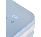 Мобильный холодильник компрессорный • цвет Темно-синий • сенсорный LED дисплей • температура в режиме морозильника от -18 до 0 °C • температура в режиме холодильника от 0 до +20 °C • работа от сети/прикуривателя автомобиля/аккумулятора • автоматическая защита разряда аккумулятора машины • крышка на магните • габариты 38,5х46,5х32см • объем 22л
