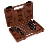 Наборы инструмента GROSS разработаны специально для автолюбителей и центров технического обслуживания. Головки и комбинированные ключи изготовлены из хромованадиевой стали, придающей инструменту исключительную твердость в сочетании с легкостью. Биты, биты-вставки и отвертки производятся из стали S2, улучшающей свойства инструмента. Набор комплектуется трещотками с реверсом и быстрым сбросом, трещоточный механизм имеет 120 зуба и обеспечивает исключительную мягкость и плавность в работе. Шаг зуба 3 град. Все наборы упакованы в кейс. Наборы инструмента GROSS пригодятся вам не только в автомобиле. С их помощью можно проводить бытовой ремонт дома и на даче, ремонт бытовых конструкций и садовой техники. Набор предназначен для слесарно-монтажных работ. Состав набора: Ключ трещоточный 1/2" Переходник 1/2" – 1/4" Адаптер для бит 5/16" - 1/2" Головки торцевые 1/2": 8, 9,10, 11, 12, 13, 14, 15, 16, 17, 18, 19, 20, 21, 22, 23, 24 мм Биты 5/16": PH1, PH2, PZ1, PZ2, SL4, SL5.5, SL7, H3, H4, H5, H6,