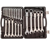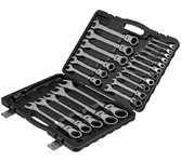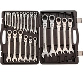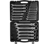 Материал: хромованадиевая высоколегированная сталь. Покрытие: хром/никель. Профессиональный инструмент: да. Тип: Набор ключей. Габариты упаковки (ед) ДхШхВ: 0.503x0.36x0.065. Вес упаковки (ед): 1.2. Трещоточный: да. Страна производства: Китай. Количество предметов: 22 предмета. Комбинированные ключи, список: 6, 7, 8, 9, 10, 11, 12, 13, 14, 15, 16, 17, 18, 19, 20, 21, 22, 23, 24, 27, 30, 32 мм. Максимальный размер ключа: 32. Минимальный размер ключа: 6. Форма ключа : прямой, шарнирный. Система измерения: метрическая. Особенности ключа: с шарнирным механизмом. Тип ключа: комбинированный. Форма ключа: прямой, шарнирный. Покрытие: хром/никель. Особенности: профессиональный инструмент, трещоточный, с шарнирным механизмом. Количество предметов: 22 предмета. Тип ключа: комбинированный. Размер ключа: мин. - 6 мм, макс. - 32 мм