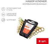 REXANT (12-5842-2) Набор ключей комбинированных (8-11, 13, 14, 17, 19мм), 8 шт, желтый цинк