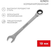 REXANT (12-5813-1) Ключ комбинированный трещоточный 19мм, CrV, зеркальный хром