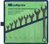 СИБРТЕХ Набор ключей комбинированных, 6 - 19 мм, 8 шт., CrV, фосфатированные 15473