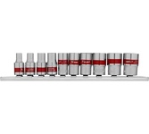 Набор из 10 торцевых головок размером 4-13 мм Matrix 13594 с присоединительным квадратом 1/4", с 12-гранным профилем, из стали CrV, предназначен для работы с небольшими резьбовыми соединениями. Насадки будут полезны автовладельцу, работнику автосервиса и домашнему мастеру.ПреимуществаУдобная работа в тесном пространстве — благодаря 12-гранному профилю головки требуется повернуть инструмент всего на 30° для перестановки.Высокий ресурс — насадки изготовлены из хромованадиевой стали, рабочие части закалены до твердости 42 HRC.Защита от разрушения — полированное хромоникелевое покрытие предотвращает образование коррозии.Быстрый поиск нужной торцевой головки — на корпусах насадок имеются красные полоски и маркировка с обозначением размера.Удобное хранение — благодаря металлической планке-держателю торцевые головки всегда будут под рукой и не потеряются.
