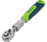 Ключ-трещотка 1/4″ Сибртех 14075 с телескопической рукояткой длиной 170-230 мм, храповым механизмом с 72 зубьями и функцией быстрого сброса, — инструмент для работы с резьбовым крепежом. Используется совместно с торцевыми головками, удлинителями, адаптерами. Телескопическая рукоятка упрощает работу с труднодоступным крепежом, а также позволяет увеличить прикладываемое усилие. Трещоточный механизм с 72 зубьями облегчает работу, угол поворота составляет 5°, что удобно в условиях ограниченного пространства. Инструмент пригодится в мастерской и гараже. Преимущества Удобная регулировка длины — предусмотрено 4 уровня фиксации рукоятки в диапазоне 170-230 мм. Прочность — инструмент изготовлен из закаленной хромованадиевой стали твердостью 49-55 HRC и выдерживает интенсивное использование без риска поломки. Защита от разрушения — хромовое покрытие предотвращает образование коррозии. Решение широкого спектра задач — механизм быстрого сброса упрощает и ускоряет замену насадок. Быстрый переход от монтажа к демонтажу — п