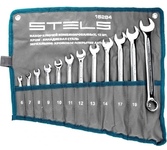 Набор Stels 15284 включает 12 комбинированных ключей из стали CrV, размером от 6 до 22 мм, антислип, которые позволяют откручивать и закручивать резьбовые соединения. Они универсальны в применении, т.к. имеют кольцевую и рожковую головки. 12-гранный профиль накидного зева обеспечивает увеличенную площадь контакта с поверхностью крепежа, что минимизирует вероятность его деформации. Ключи будут полезны в автомастерской, для монтажа и демонтажа оборудования, пригодятся для работ по дому.ПреимуществаВысокий показатель прочности — инструменты изготовлены из стали хромованадиевой группы, твердость рабочих частей составляет 42-50 HRC.Улучшенные антикоррозионные свойства и повышенная износостойкость благодаря хромированному покрытию.Удобство при выполнении монтажных работ — кольцевой зев каждого ключа смещен на 15 градусов относительно его тела.Надежный хват — благодаря рельефной поверхности ключи не скользят в руке.