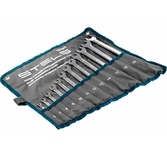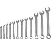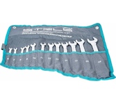 Комбинированные (рожково-накидные) ключи – самый распространённый и популярный тип гаечного ключа, сочетающий в конструкции рожковый и накидной профили. Использование двух одноразмерных профилей делает инструмент универсальным. Ключи изготовлены из легированной хромованадиевой стали в соответствии со стандартом DIN 3113 и отвечают требованиям ГОСТ 16983-80 Для вашего удобства мы собрали наиболее используемые размеры ключей в наборы. Органайзер из прочной, устойчивой к загрязнениям ткани сделает хранение инструмента удобным и компактным. Размеры ключей: 6-7-8-9-10-11-12-13-14-17-19-22 мм Покрытие: сатиновое ГОСТ 16983-80 Прочность: 47-52 HRC DIN-3113