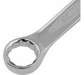 Комбинированный ключ Сибртех 14926 с никелированной поверхностью используется для работы с резьбовым крепежом размером 41 мм. Две рабочие части (рожковая и накидная) расширяют возможности применения инструмента. Кольцевой зев с 12 гранями подходит для работы с болтами и гайками как с шестигранным, так и с двенадцатигранным профилем. Инструмент применяется в автосервисах, на производстве, в строительстве и других сферах, где требуется монтаж крупного резьбового соединения. Преимущества Прочность — ключ изготовлен из углеродистой стали методом ковки и выдерживает высокие нагрузки без риска поломки. Надежность — твердость рабочих частей 43-48 HRC позволяет работать со значительным усилием. Функциональность — кольцевой зев наклонен на 15° относительно плоскости ключа, что упрощает его установку на головку крепежа. Коррозионная стойкость — никелевое покрытие защищает инструмент от разрушения.