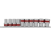 Торцевые головки Thorvik изготовлены с применением технологий, позволяющих передавать усилия, превышающие расчетные по современным стандартам на 30%. Широкий диапазон размеров, типов и профилей, высокая точность обработки, качественная хромомолибденовая сталь (Cr-Mo) и устойчивое фосфатированное покрытие делают инструмент надежным и долговечным. Имеют отверстие для фиксирующего штифта и выточка для уплотнительного кольца. Служит для начального откручивания крепежных деталей с 6-гранным рабочим профилем. Позволяет прилагать максимально допустимые для торцевых головок рабочие нагрузки. Комплектация набора: головки торцевые ударные 1/2"DR: 10, 12, 13, 14, 17, 18, 19, 21, 22, 24 мм, в кейсе.