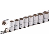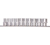 Набор универсальных торцевых головок Matrix 13597 состоит из 10 насадок размером 10-22 мм, из стали CrV, с посадочным гнездом 1/2" и 12-гранным профилем Spline. Комплект включает головки популярных размеров и используется для слесарно-монтажных работ в бытовой и профессиональной сферах.ПреимуществаУниверсальность — рабочий профиль Spline подходит для работы с любым типом крепежа.Прочность и долговечность — насадки из хромованадиевой стали выдерживают интенсивные нагрузки и устойчивы к износу.Защита от разрушения — полированное хромоникелевое покрытие предотвращает образование коррозии.Быстрый поиск нужной торцевой головки — на корпусах насадок имеются красные полоски и маркировка с обозначением размера.Удобное хранение — благодаря металлической планке-держателю торцевые головки всегда будут под рукой и не потеряются.