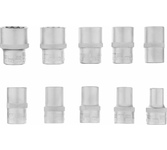 Набор 12-гранных торцевых головок Stels 13638 с посадочным размером 1/2 дюйма, из стали CrV, состоит из 10 насадок 10-22 мм для трещоток и гайковертов. С их помощью монтируют и демонтируют резьбовые соединения во время ремонта или обслуживания авто. 12-гранные торцевые головки с углом поворота 30 градусов удобны для работы в ограниченном пространстве.ПреимуществаПрочность — головки из стали хромованадиевой группы устойчивы к высоким нагрузкам.Износостойкость — твердость рабочих частей составляет 42 HRC, поэтому насадки подходят для интенсивного применения.Защита от разрушения — головки с матовым хромоникелевым покрытием устойчивы к коррозии.Удобное хранение и транспортировка — в комплект входит специальная металлическая плашка-держатель.