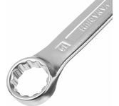 Комбинированный трещоточный ключ Matrix 14816 из стали CrV, с покрытием «зеркальный хром», размером 27 мм, позволяет быстро откручивать и закручивать болты и гайки. Рожковую часть удобно использовать там, где нет возможности полного охвата детали, а трещоточный механизм повышает удобство работы в труднодоступных местах. Преимущества Прочность — ключ из высококачественной стали 40CrV с храповым механизмом твердостью 58 HRC легко выдерживает интенсивные нагрузки. Коррозионная стойкость — зеркальное хромоникелевое покрытие защищает инструмент от воздействия влаги. Аккуратная работа — накидная часть с 12-гранным профилем полностью охватывает головку крепежа, что снижает риск деформации ее граней.