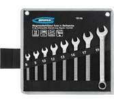 Комбинированные (рожково-накидные) ключи – самый распространённый и популярный тип гаечного ключа, сочетающий в конструкции рожковый и накидной профили. Использование двух одноразмерных профилей делает инструмент универсальным. Ключи изготовлены из легированной хромованадиевой стали в соответствии со стандартом DIN 3113 и отвечают требованиям ГОСТ 16983-80 Для вашего удобства мы собрали наиболее используемые размеры ключей в наборы. Органайзер из прочной, устойчивой к загрязнениям ткани сделает хранение инструмента удобным и компактным. Размеры ключей: 6-8-10-12-13-14-15-16-17-18-19-22 мм Покрытие: сатиновое ГОСТ 16983-80 Прочность: 47-52 HRC DIN-3113