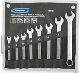 Набор комбинированных ключей Gross 15148 из 8 шт. размером от 8 до 19 мм, холодный штамп, — комплект ручных слесарно-монтажных инструментов из стали CrV, позволяющих закручивать и откручивать гаечные и болтовые соединения. Кольцевой зев каждого ключа имеет 12-гранную рабочую поверхность и крепко удерживает крепеж, не повреждая его. Ключи используются при ремонте автомобилей, сборке техники, будут полезны и в быту.ПреимуществаПрочность и надежность — инструменты произведены методом холодной штамповки из высококачественной стали CrV-группы.Устойчивость к механическим воздействиям — твердость материала рабочих частей составляет 45-48 HRC.Точность и эффективность работ — слегка изогнутые накидные рабочие части смещены на 15 градусов относительно тела ключей.Антикоррозийная стойкость — ключи защищены от ржавчины хромоникелевым покрытием.