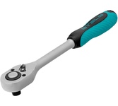 Ключ-трещотка Stels 14043 из стали CrV, с присоединительным квадратом 1/2", 72 зубцами и быстрым сбросом, предназначен для работы с резьбовым крепежом. Совместим с торцевыми головками различных размеров, а также адаптерами и удлинителями. Инструмент работает мягко и плавно благодаря 72-зубому храповому механизму. Шаг трещотки составляет 5°, что облегчает работу в ограниченном пространстве. Инструмент будет полезен в сервисном центре, авторемонтной мастерской, а также пригодится дома, в гараже или на даче. Преимущества Устойчивость к нагрузкам — ключ изготовлен из высокопрочной хромованадиевой стали. Защита от коррозии — инструмент хромирован. Шариковый фиксатор — торцевые головки и другие насадки не соскакивают во время работы. Легкая замена насадок — конструкцией предусмотрен механизмом быстрого сброса. Реверс — флажковый переключатель позволяет мгновенно изменить направление вращения насадки. Удобная эксплуатация — двухкомпонентная рукоятка с рифленой поверхностью не выскальзывает из руки, а ее эргономичная