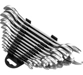 Набор из 12 хромированных рожковых ключей Sparta 152945 предназначен для откручивания и закручивания болтов, гаек и других крепежей с шестигранным профилем размером от 6 до 32 мм. У каждого ключа имеются рабочие губки с различным размером зева. Они расположены под углом к рукоятке, что облегчает работу в стесненных условиях. Инструменты используются для сборки и разборки оборудования, при проведении монтажных работ, будут полезны дома, на даче или в гараже. Преимущества Прочность и деформационная стойкость — ключи изготовлены из углеродистой стали 45. Устойчивость к износу — твердость рабочих частей составляет 42 HRC, что полностью соответствует требованиям ГОСТ. Долговечность — хромированная поверхность ключей не подвержена коррозии.