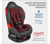 Детское автокресло SIGER «Диона» подходит для детей весом до 25 кг в возрасте от рождения до 7 лет. Благодаря особой анатомической форме сидения и системе наклона кресла, ребенок находится в оптимальном для возраста положении во время поездки, что гарантирует правильное развитие опорно-двигательного аппарата. Особая форма подголовника и увеличенная боковая поддержка обеспечивают защиту ребенка в случае бокового удара. Мягкий подголовник, вкладыш, специальная ортопедическая спинка и накладки внутренних ремней повышают уровень комфорта во время поездки. Четыре позиции регулировки внутренних ремней по высоте позволяют адаптировать кресло под рост ребенка. Чехол изготовлен из качественного износостойкого и гипоаллергенного материала. Характеристики: Тип: автокресло Цвет: серый Группа: 0/1/2 (до 25 кг) Вес ребенка: до 25 кг Возраст: 0 месяцев - 7 лет Крепление: автомобильный ремень Внутренние ремни: пятиточечные Регулировка ремней: есть Способ установки: спиной или лицом вперед Особенности установки: фиксатор натя