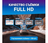 Дисплей 3.0". Разрешение 1080FHD(1920*1080) 30 кадр/сек, 720P(1280*720) 30 кадр/сек. Угол обзора: 140 градусов. Процессор: Novatek 96220. G-сенсор. Циклическая запись. Непрерывная запись. Автовыключение. Датчик движения. Запись звука. Память настроек. Прочный металлический корпус.