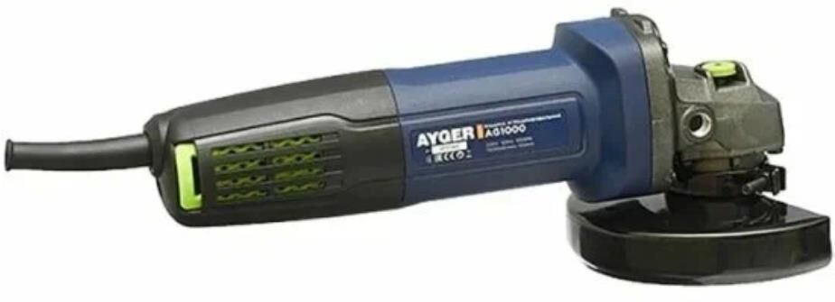 AYGER AG1000 — это универсальная и надёжная углошлифовальная машина средней мощности, подходящая для большинства бытовых и ремонтных работ. Отличается комфортом в работе и простотой обслуживания. Резка, шлифовка и зачистка металлов, камня, керамики и других материалов средней твердости. Мощность 1000 Вт обеспечивает эффективную работу с металлом и другими материалами. Диаметр диска 115 мм оптимален для резки и шлифовки в узких местах. Наличие блокировки шпинделя — упрощает замену дисков. Характеристики: Тип: машина углошлифовальная Мощность: 1000 Вт Двигатель: щеточный Напряжение сети: 220 В Частота тока: 50 Гц Число оборотов: 11000 об/мин Диаметр диска: 125 мм Регулировка оборотов: нет Питание: от сети Плавный пуск: да Посадочный диаметр: 22.2 мм Резьба шпинделя: М14 Эргономичное покрытие рукоятки: да Регулировка числа оборотов: да Антивибрационная рукоятка: да Быстрозажимная гайка: да Блокировка шпинделя: да Длина кабеля, м: 2 Система: охлаждения двигателя, защиты от пыли Защита: от заклинивания диска Габар