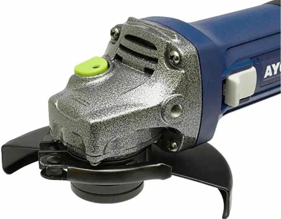AYGER AG1100 — это надежный и удобный углошлифовальный инструмент средней мощности, который хорошо справляется с бытовыми и ремонтными задачами, обеспечивая качественную и комфортную работу. Применяется в строительстве и ремонте для выполнения отрезных и шлифовальных работ. Эргономичная рукоятка упрощает управление инструментом. Наличие кожуха препятствует попаданию искр и пыли на пользователя. Кожух быстро и легко регулируется, а также защищает пользователя от травм в процессе эксплуатации. Характеристики: Тип: машина углошлифовальная Мощность: 1100 Вт Двигатель: щеточный Напряжение сети: 220 В Частота тока: 50 Гц Число оборотов: 11000 об/мин Диаметр диска: 125 мм Регулировка оборотов: да Питание: от сети Плавный пуск: да Посадочный диаметр: 22.2 мм Резьба шпинделя: М14 Эргономичное покрытие рукоятки: да Регулировка числа оборотов: да Антивибрационная рукоятка: да Быстрозажимная гайка: да Блокировка шпинделя: да Длина кабеля, м: 2 Система: охлаждения двигателя, защиты от пыли Защита: от заклинивания диска Га
