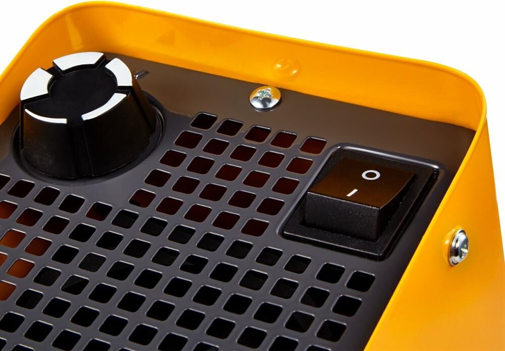 Тип тепловой пушки электрическая Потребляемая электрическая мощность 2.2 кВт Ступени мощности 0/2200 Вт Производительность 100 м3/час Нагревательный элемент металлокерамический Термостат есть Площадь обогрева (макс) 25 м2 Топливо Время работы (от полного топливного бака) 24 ч Характеристики электропитания Напряжение электросети 220 В Потребляемый ток 9.6 A Безопасность Защита от перегрева есть Конструкция Ручка для транспортировки есть Форма корпуса прямоугольная Особенности Режим вентиляции без нагрева есть Корпус Материал корпуса металл Степень защиты корпуса IP21 Степень электрозащиты I класс Цвет желтый/черный Размеры (ШхВхГ) 160 х 172 х 175 мм Вес товара 1.1 кг Габариты упаковки (ед) ДхШхВ 0.18x0.16x0.15 м Вес упаковки (ед) 1.29 кг Антикоррозийное покрытие есть