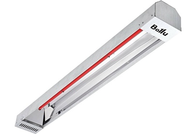 Инфракрасный обогреватель BIH-T2-1.5 – это сфокусированный интенсивный обогрев, IP54, ТЭНы с оболочкой из спецсплава Incoloy для долговременной эксплуатации в тяжёлых условиях (мороз, ветер). Поворотные кронштейны для потолка или стены, герметичный коммутационный блок. Высота установки – 2,5–3,5 м.