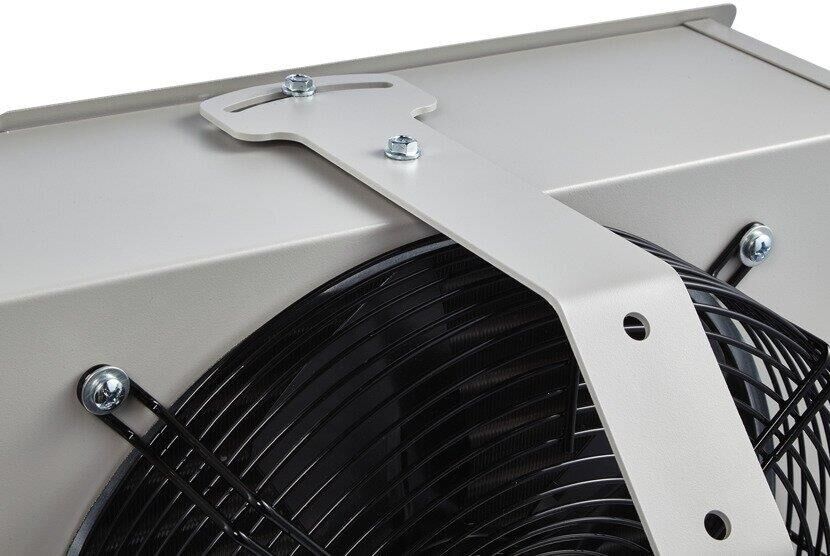 Водяной тепловентилятор Ballu BHP-W4-15-D – прибор для обогрева небольших помещений высотой до 4 метров._x000D_ _x000D_ Тепловая мощность прибора от 12 до 20 кВт в зависимости от режима производительности и температуры теплоносителя. Максимальная рабочая температура теплоносителя 120°С при давлении 15 бар, что позволяет использовать в качестве теплоносителя пар и перегретую воду._x000D_ _x000D_ Осевой вентилятор диаметром 330 мм создает воздушный поток длиной 6 метров и обеспечивает максимальную производительность до 1900 м³/ч._x000D_ _x000D_ Водяной тепловентилятор устанавливается преимущественно на потолок при помощи кронштейна, который входит в комплект поставки. Выходная решетка в форме анемостата распределяет теплый воздушный поток в четырех направлениях.