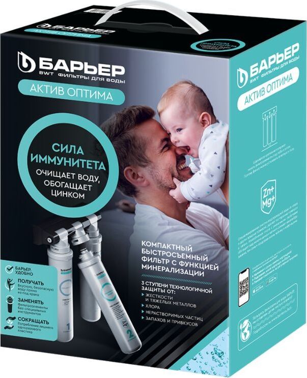 Фильтр нового поколения Барьер Актив Сила красоты разработан на базе уникальных австрийских технологий обогащения воды полезными минералами. Трехступенчатый и в тоже время компактный фильтр, эффективно очищает воду от хлора, органических примесей и тяжелых металлов, дозируя в воду Магний и Цинк, недостатком которого страдает 90% населения России. Для тех, кому важен внешний вид и внутреннее здоровье организма. Здоровье и молодость. Цинк играет важную роль в различных физиологических и метаболических процессах. Он придает аппетит нашей жизни, позволяя организму наслаждаться запахами и вкусами. Повышает уровень тестостерона Улучшает состояние кожи, волос, ногтей Регулирует обмен веществ Снижает риск развития аллергии