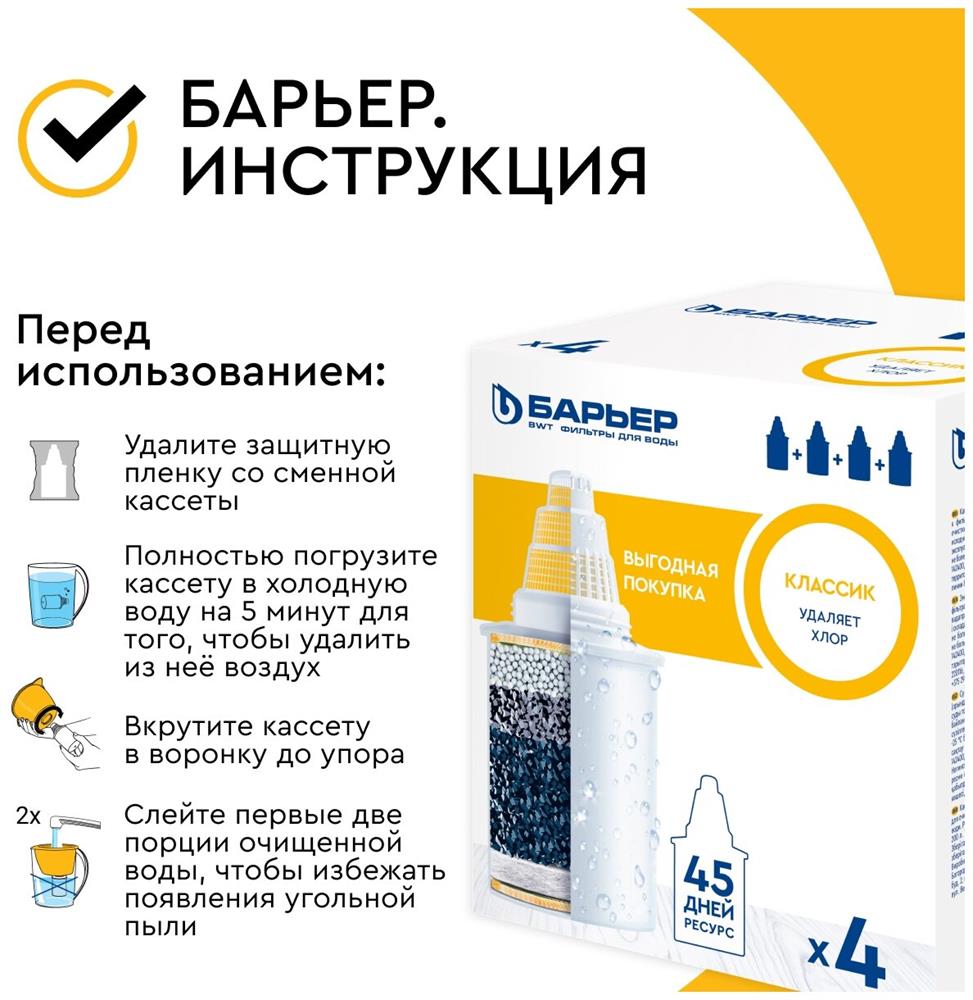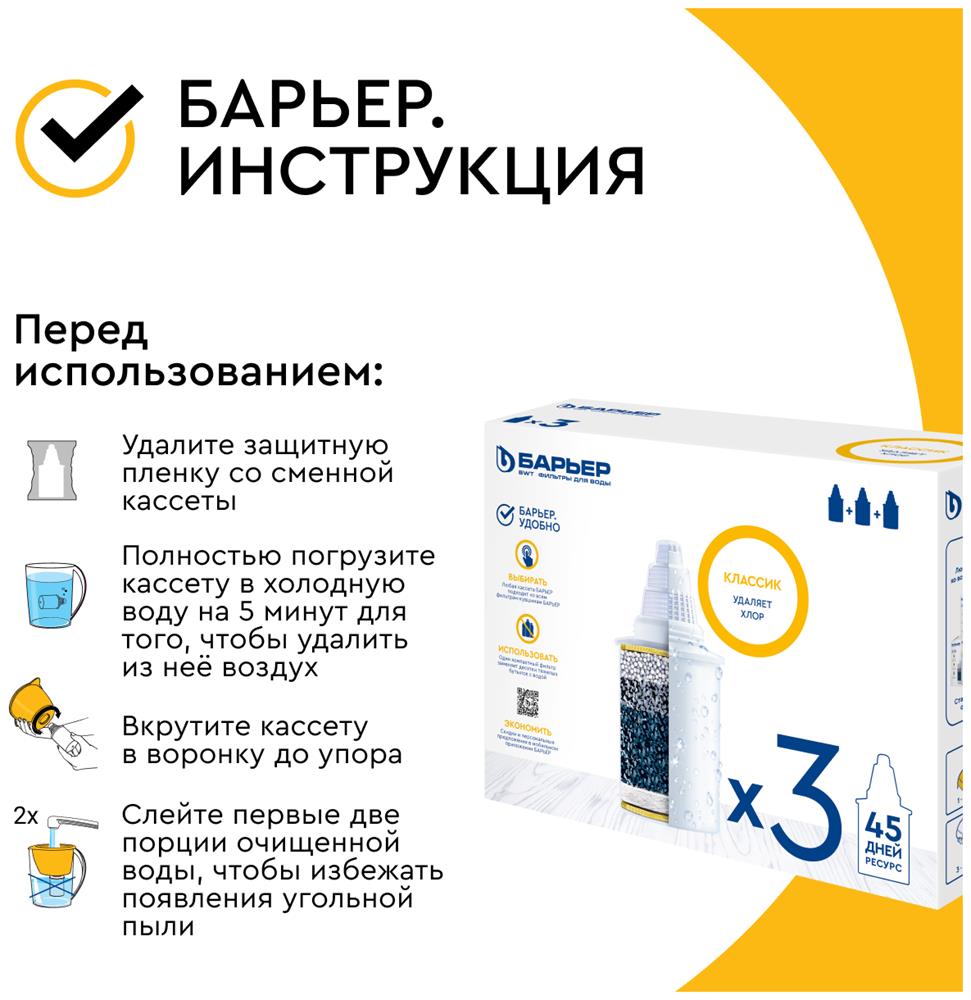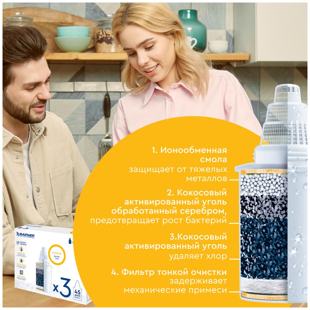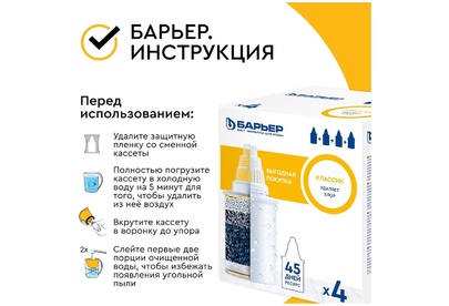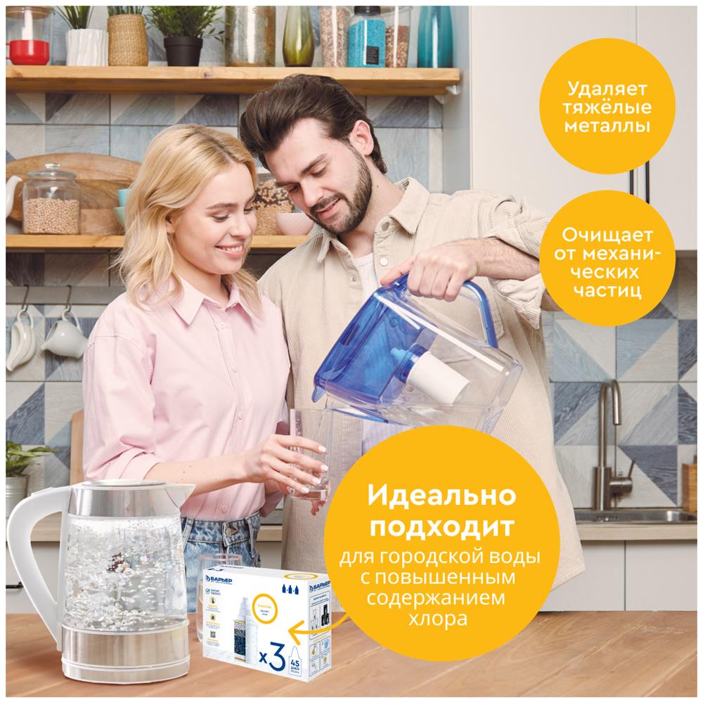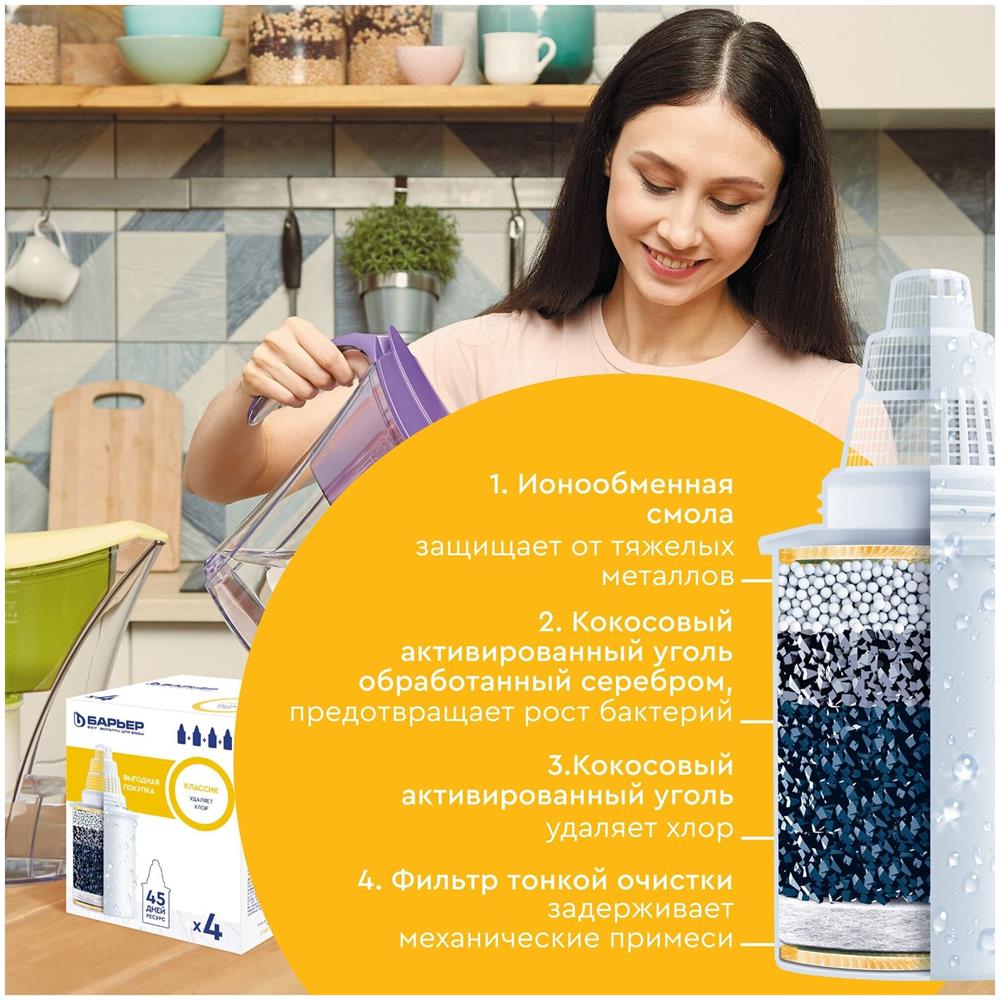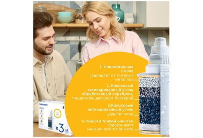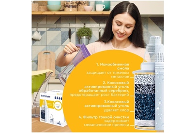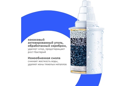 Экономичная очистка водопроводной воды от хлора и других вредных примесей. Удаляет посторонние привкусы и запахи.