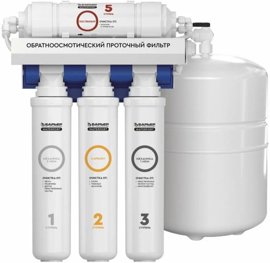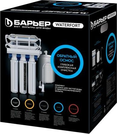 5-ти ступенчатый обратноосмотический фильтр нового поколения предназначен для глубокой очистки питьевой воды из централизованных источников водоснабжения от большинства содержащихся в ней вредных веществ. Всё необходимое для установки в комплекте. Подключение фильтра осуществляется через быстросъемные соединения Quick fitting 1/4”. В комплекте: WaterFort Osmo Механика 1 мкм , WaterFort Osmo мембрана, WaterFort Osmo ПостФильтр, WaterFort Osmo Механика 5 мкм , WaterFort Osmo Карбон+