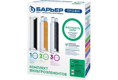Набор из трех картриджей для фильтров «Профи Жесткость Сити» для жёсткой и сильно хлорированной воды с увеличенным ресурсом по удалению хлора. Позволяет забыть о накипи. Обеспечивает более глубокую очистку от хлора и побочных продуктов хлорирования за счёт нового картриджа Поликарбон. Вторая ступень «Смягчение» может быть подвергнута многократной регенерации раствором поваренной НЕ йодированной соли в домашних условиях. Производительность - 2 л/мин. Протестирован на максимальное давление 30 АТМ - 4-х кратный запас прочности. Ресурс 10000 литров. Подходит для ПРОФИ Жесткость Сити (исп. Лайт)
