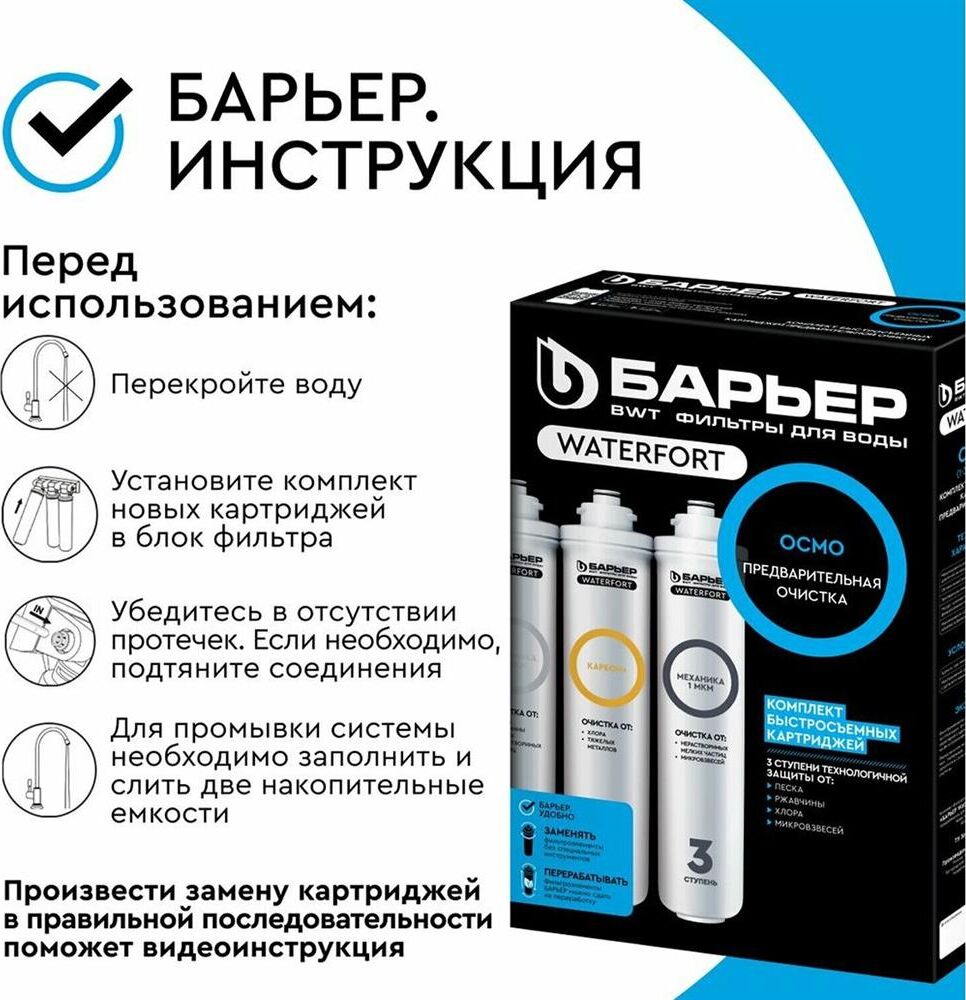 БАРЬЕР Р272Р00 Комплект предфильтров WATERFORT OSMO (1-3 ступени)