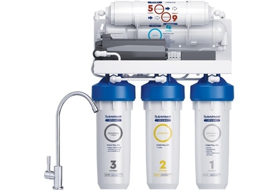 Система для очистки воды методом обратного осмоса с насосом повышения давления. Позволяет обеспечить семью кристально-чистой и водой, не уступающей по качеству бутилированной. Тип очистки воды обратноосмотическая система Объем 8 л. Ресурс 5000 л. Скорость фильтрации 0.34 л/мин. Количество картриджей в комплекте 5 шт. Система очистки пятиступенчатая. Рабочее давление до 7 атмосфер.