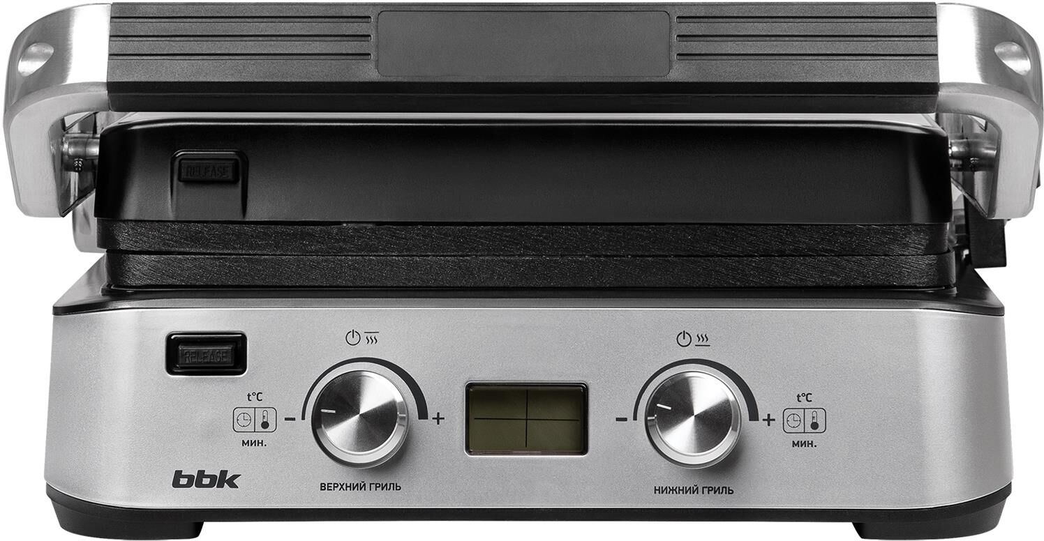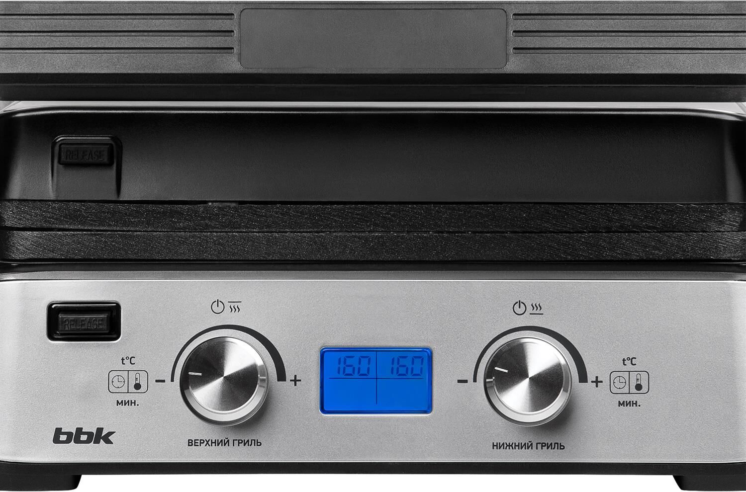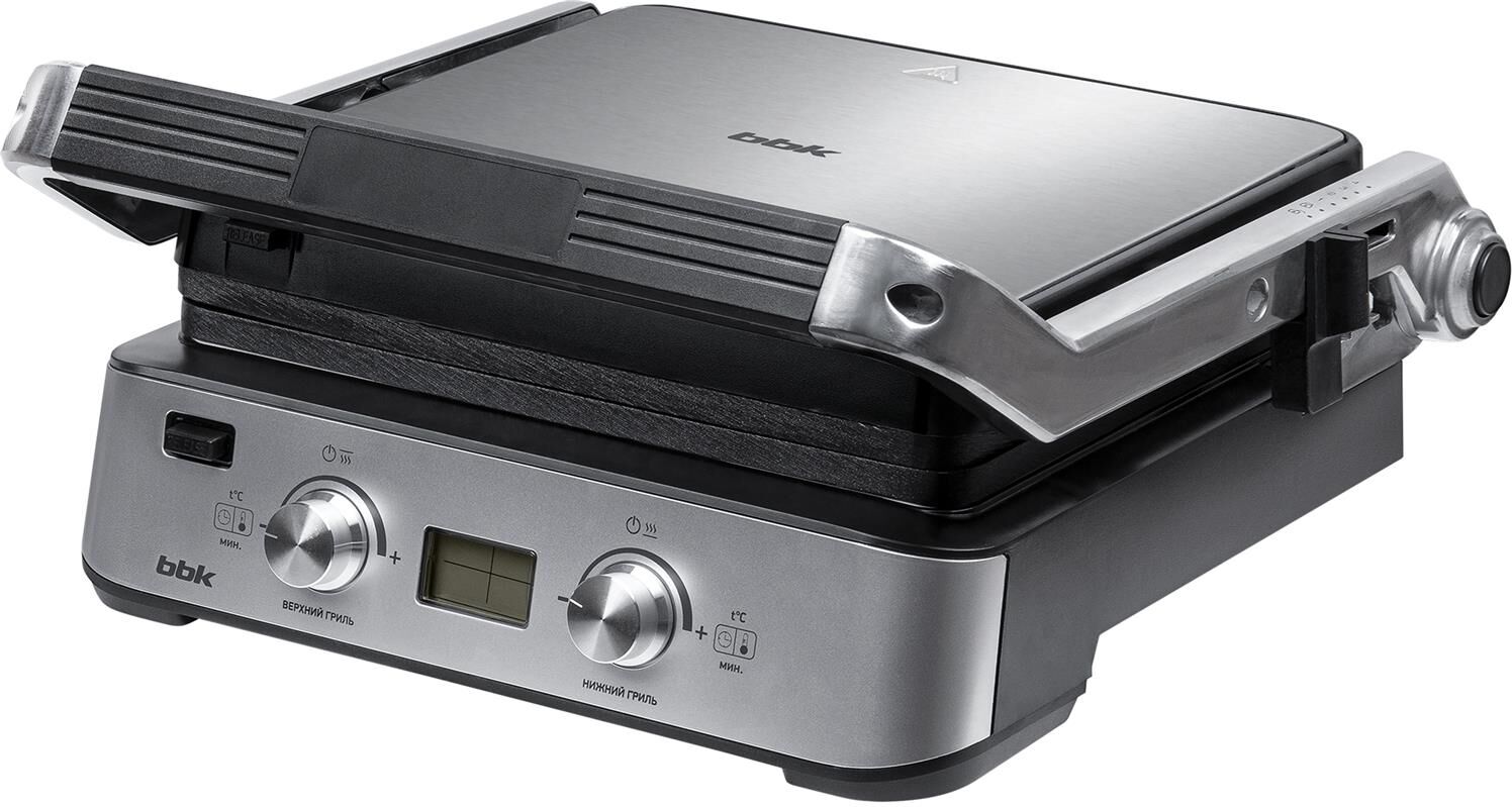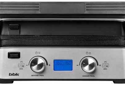 регулировка степени закрытия крышки с возможностью открытия на 180⁰ , съемные нагревательные пластины, функция раздельного управления температурой и временем приготовления верхнего и нижнего гриля, размер рабочей поверхности 260 х 29 мм