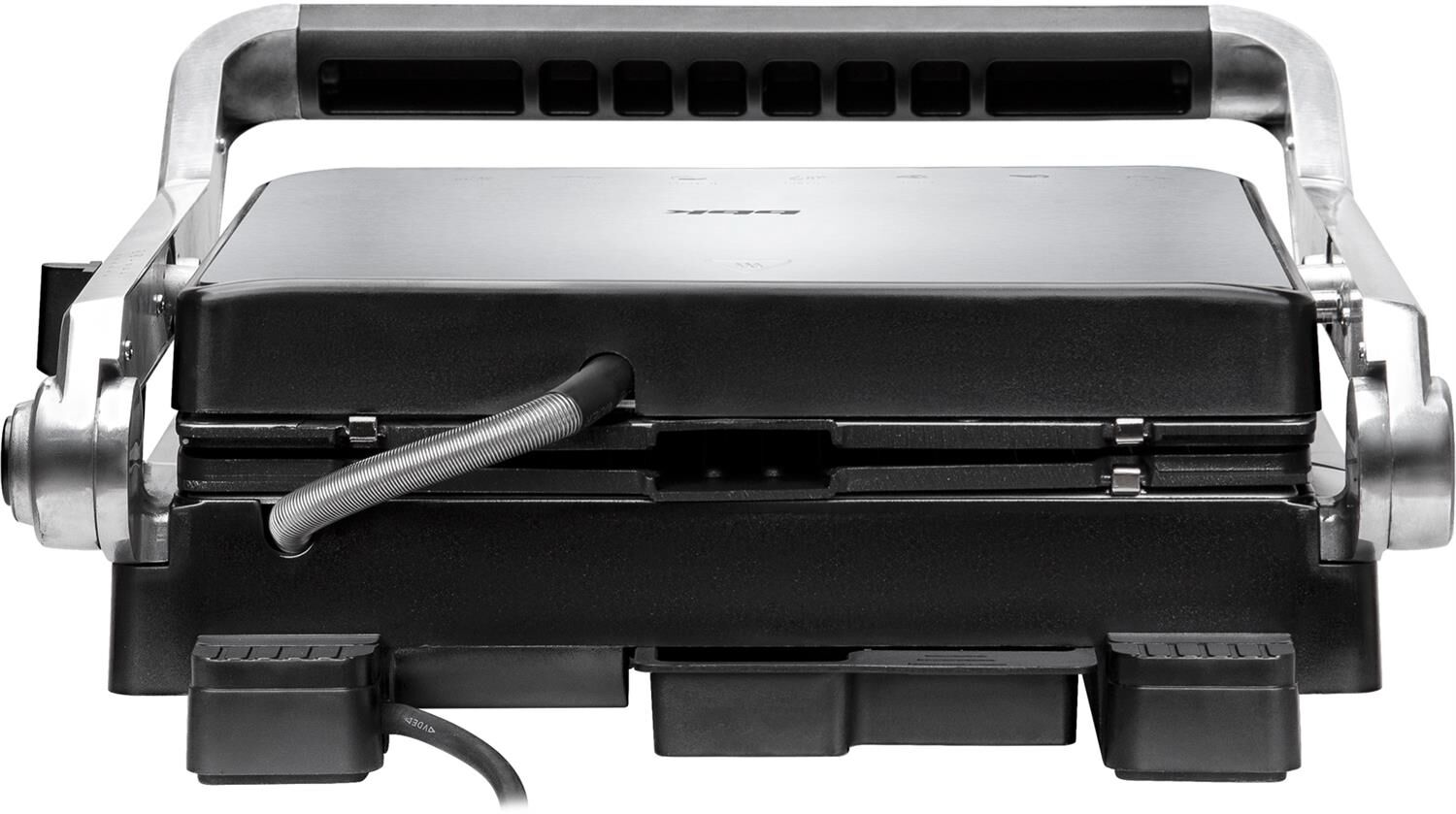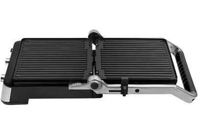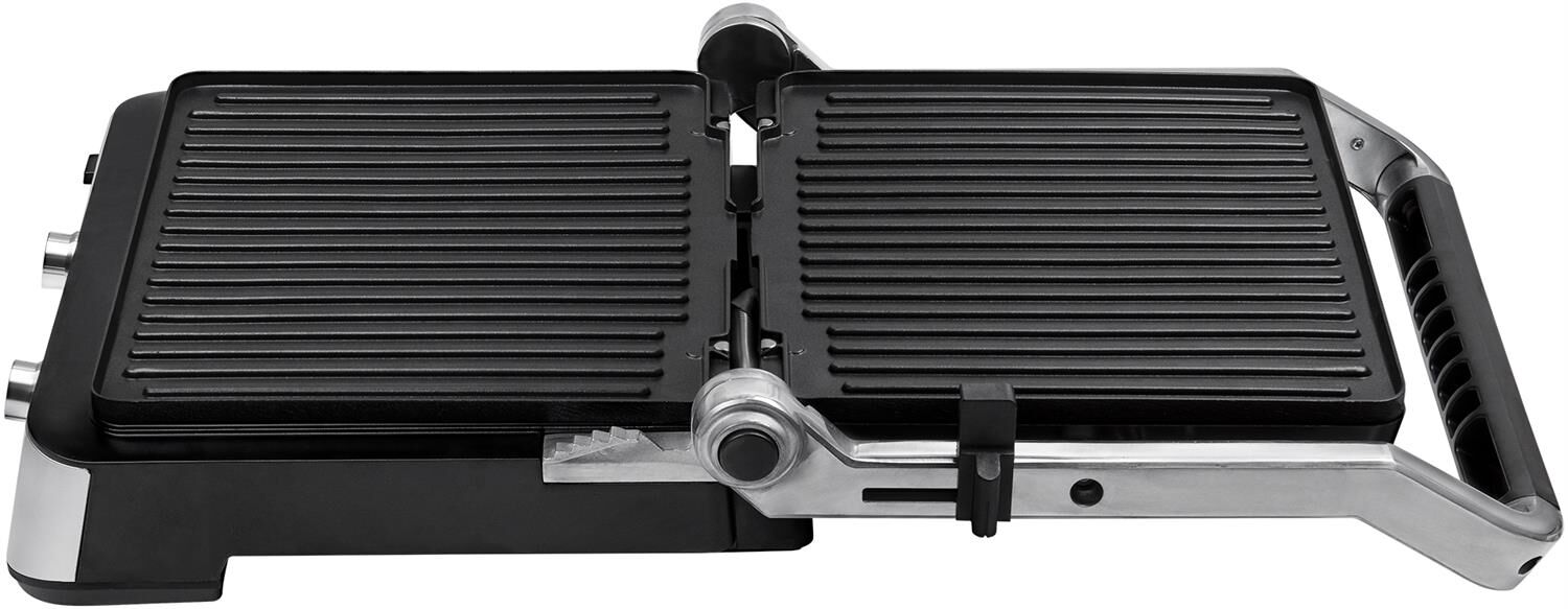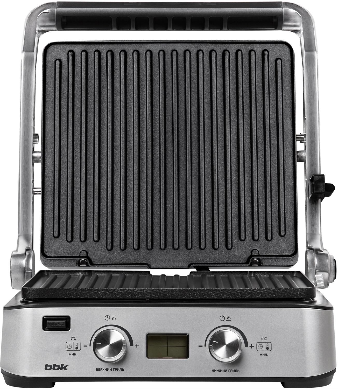 регулировка степени закрытия крышки с возможностью открытия на 180⁰ , съемные нагревательные пластины, функция раздельного управления температурой и временем приготовления верхнего и нижнего гриля, размер рабочей поверхности 260 х 29 мм