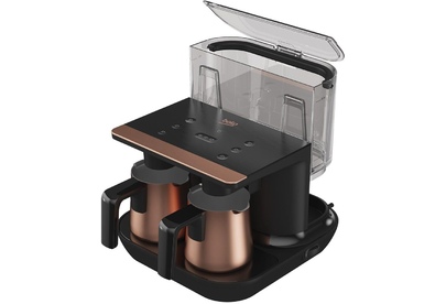 3D приготовление с индукционным нагревателем, который поддерживает постоянную и точную температуру; Технология Spinjet , которая определяет необходимое количество воды; Технология Cooksense для воссоздания подлинного вкуса кофе по-турецки; Кофейники из нержавеющей стали; Выбор размера чашки; Приготовление до 6 чашек кофе по-турецки за один раз; Функция «Отменить» уже во время работы; Индукционная технология для быстрого разогрева и охлаждения; Технология защиты от перелива Anti Spill ; Съемный резервуар для воды объемом 1,5 л; Мощность: 1100 Вт