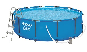 Каркасный бассейн Steel Pro Max с ф.-насосом и лестн. 366х 100 см, 9150 л, Bestway 56418 Сборный каркасный бассейн Bestway 56418 круглой формы с фильтр-насосом и лестницей. Чаша бассейна выполнена из высококачественного трехслойного ПВХ: два слоя плотного винила и один - полиэстер для особой прочности. Каркас металлический нержавеющий, устойчивый к погодным воздействиям и повышенной влажности. Установка простая, не требуется бетонирования и подготовки площадки, необходима только плоская горизонтальная площадка. Сезонный бассейн (рекомендуется разбирать на холодное время года) - может быть легко разобран и собран заново. Время сборки и подключения основных узлов бассейна не более 1-2 часов. Имеется удобный сливной клапан, подключается к садовому шлангу, что дает возможность слить воду в любое удобное место. Характеристики Объём: 9 150 л. Размер: 366 х 100 см. Производительность насоса: 2006 л/ч. Напряжение: 220.240 В. Размер упаковки: 35 см ? 44,5 см ? 116 см Объем: 0,18 м3 Вес: 38 кг.