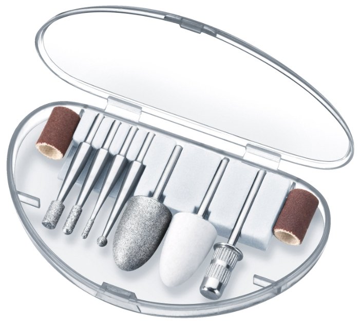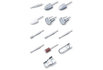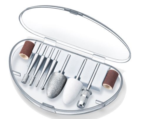 Аппарат для профессионального ухода за ногтями и стопами. 10 высококачественных насадок из сапфира и полировального войлока, 30 одноразовых насадок с покрытием из наждачной бумаги. Защитный колпачок для ногтевой пыли. С нескользящей поверхностью рукоятки. Предохранительный фиксатор. Подходит для людей, страдающих сахарным диабетом. Также подходит для искусственных ногтей. Простое управление.Максимальная мощность до 20 000 об/мин. Плавная регулировка количества оборотов. Правое и левое вращение.