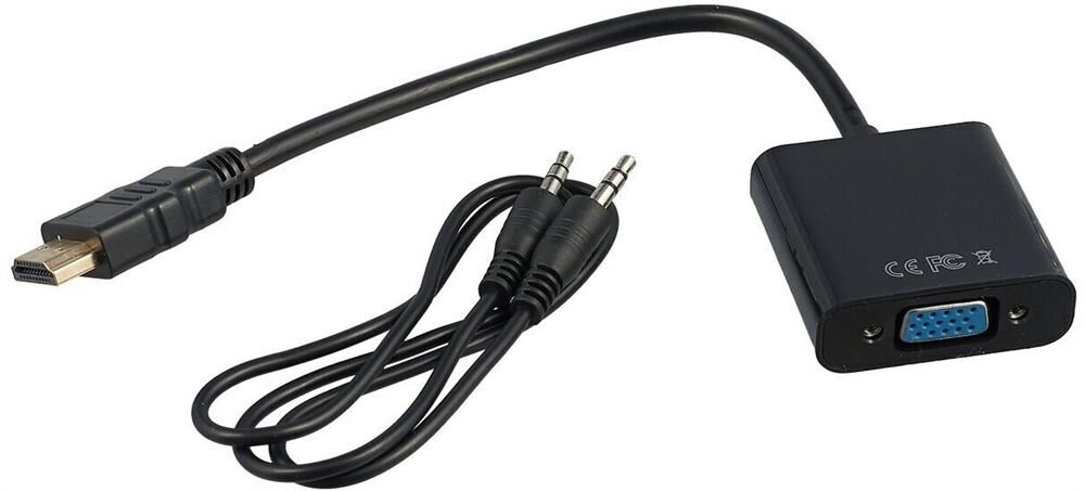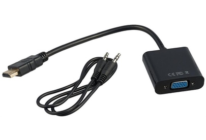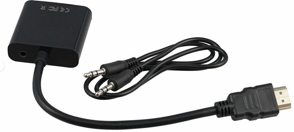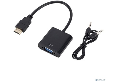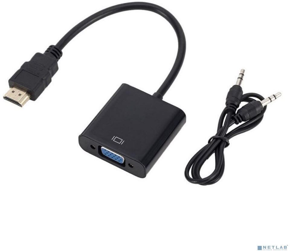 [переходники] Bion Переходник с кабелем HDMI - VGA+Audio, 19M/15F + miniJack 3.5mm, длина кабеля 15см, черный [BXP-A-HDMI-VGA-03]