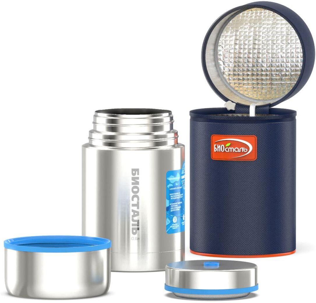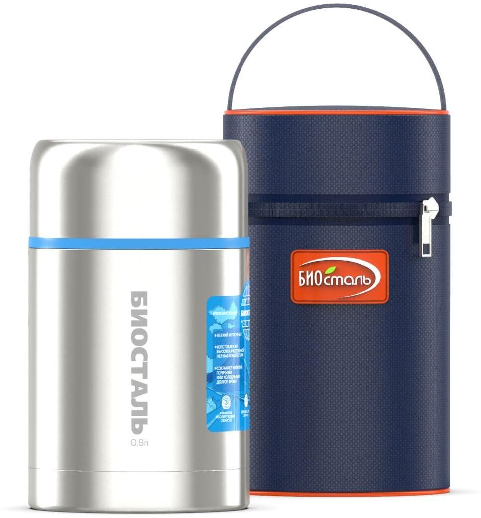 Термос "Биосталь-Авто" с широким горлом, суповой, 0,8л.Лёгкий и прочный, Сохраняет напитки горячими или холодными долгое время, Изготовлен из высококачественной нержавеющей стали, Корпус покрыт защитным прозрачным лаком, Конструкция пробки позволяет использовать термос как для напитков, так и для первых и вторых блюд, С термочехлом для дополнительной термоизоляции, хранения и переноски термоса, Этикетка легко снимается и не оставляет следов