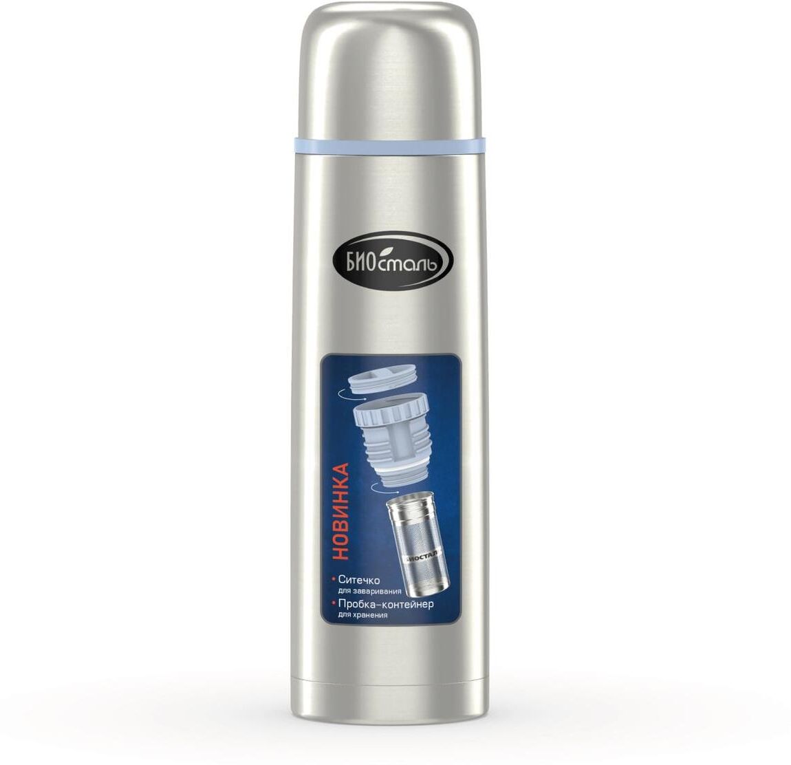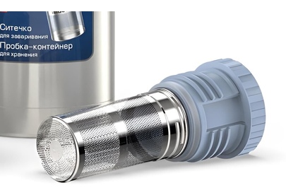 Термос 1,0л. Пробка-контейнер для хранения и ситечком для заваривания. Ситечко из высококач. нерж. стали 18/8.
