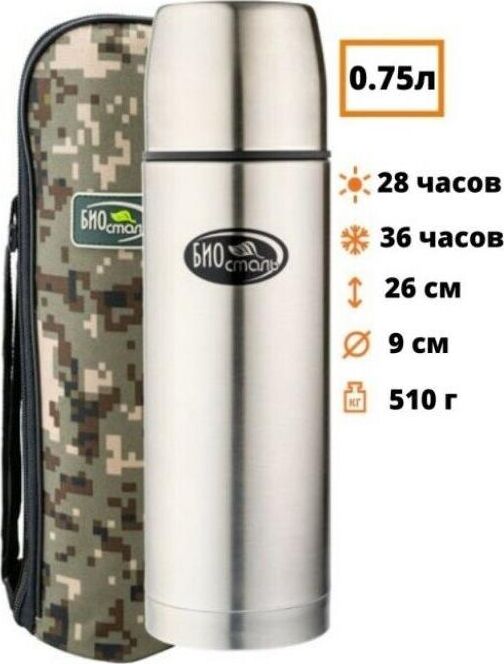 BIOSTAL Термос нерж 0,75л Охота узкое горло в чехле