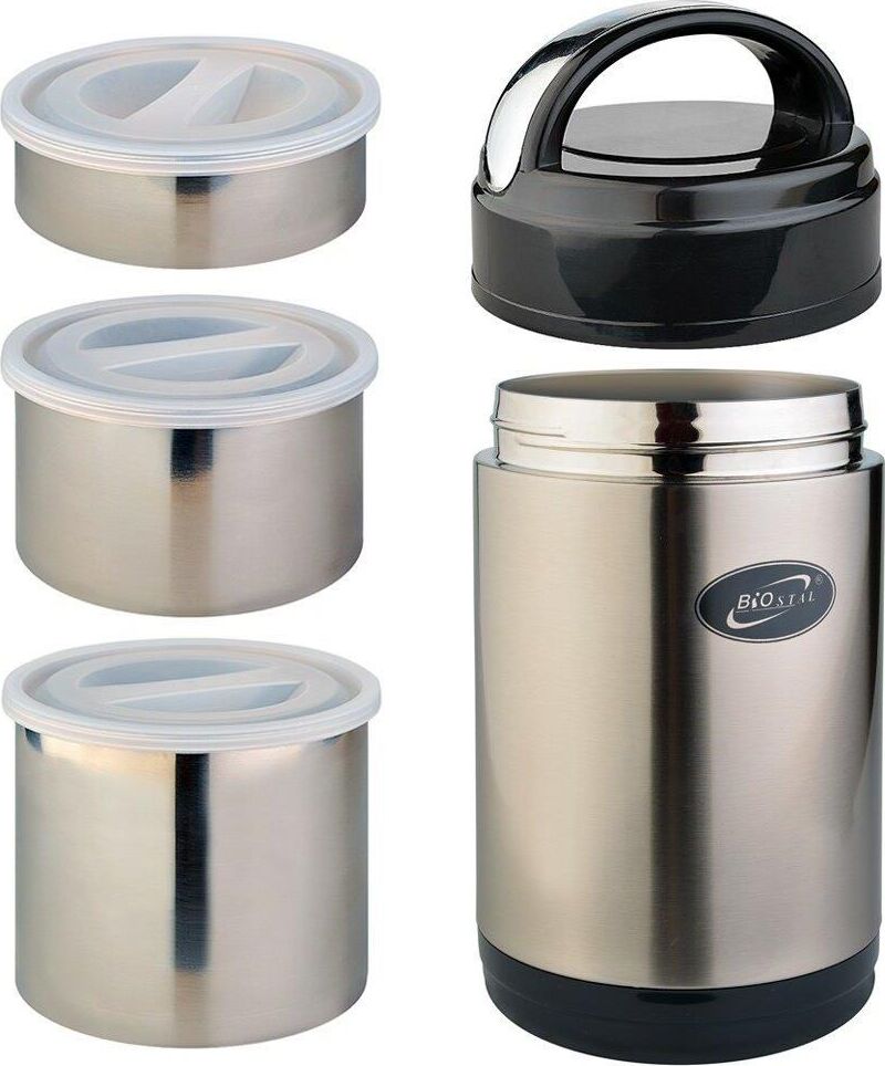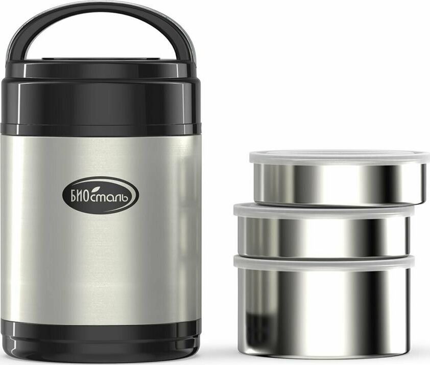 BIOSTAL Термос нерж 1,8л широкое горло с 3-мя метал контейнерами