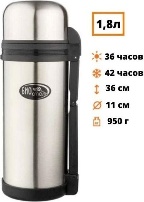 BIOSTAL Термос нерж 1,8л узкое горло с/руч