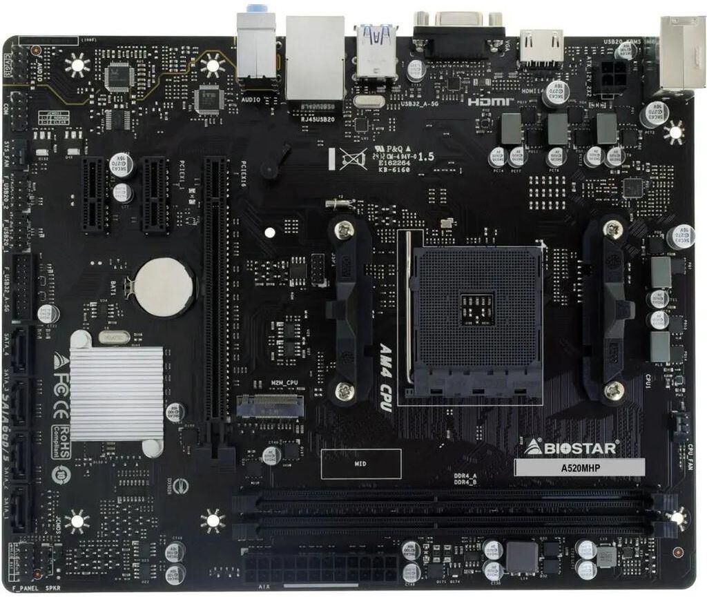 BIOSTAR Материнская плата A520MHP Soc-AM4 AMD A520 2xDDR4 mATX AC`97 8ch(7.1) GbLAN RAID+VGA+HDMI