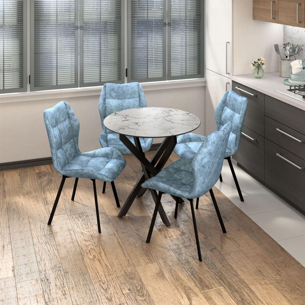 Стол Монако имеет округлую форму, что создает уютную и гармоничную атмосферу в помещении. Столешница изготовлена из МДФ 16 мм, с применением фотопечати, рисунок которой защищен нанесением слоя специального лака. Одной из особенностей этого обеденного стола являются его ноги в форме крестовины. Это придает столу не только эстетическую привлекательность, но и функциональность, так как данная форма ног гарантирует стабильностьи прочность изделия. Габариты 750*750*750 Толщина столешницы: 16 мм. Материал столешницы: МДФ. Материал ножек: Металл. Цвет ножек: Черный. Цвет столешницы: Фотопечать СМ-1