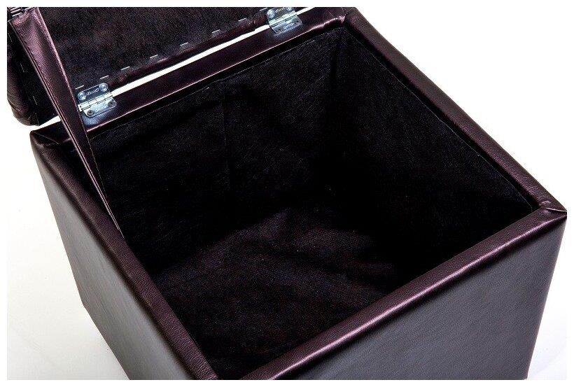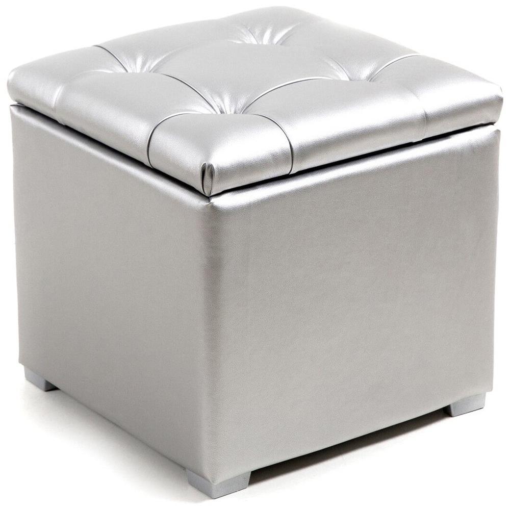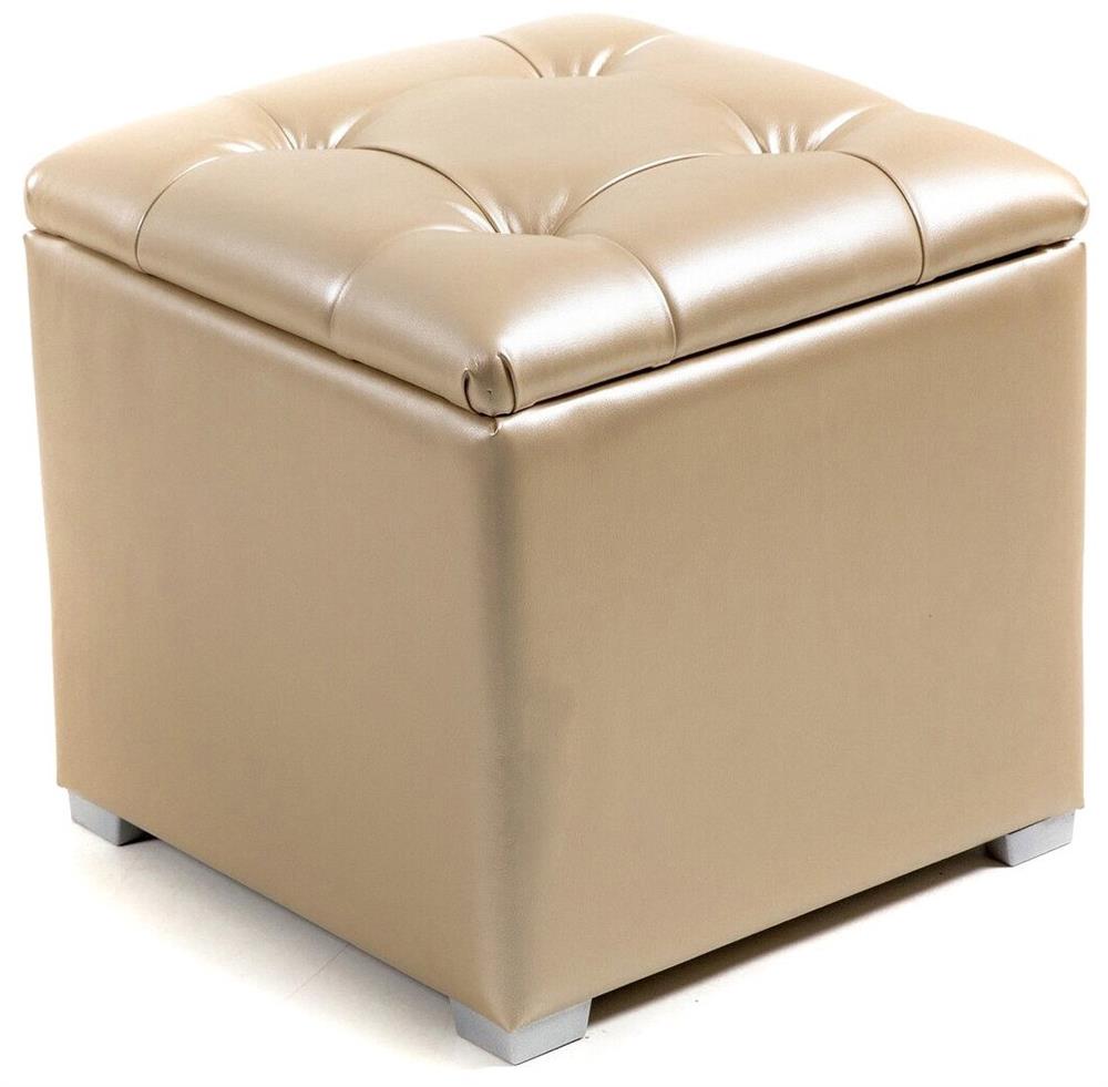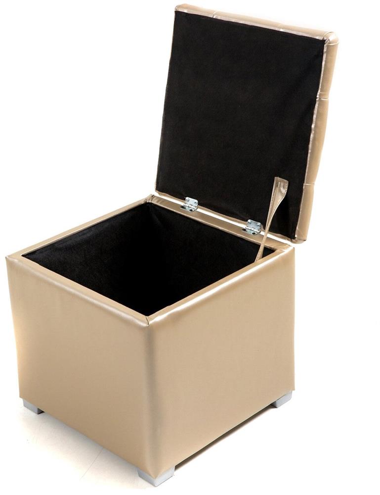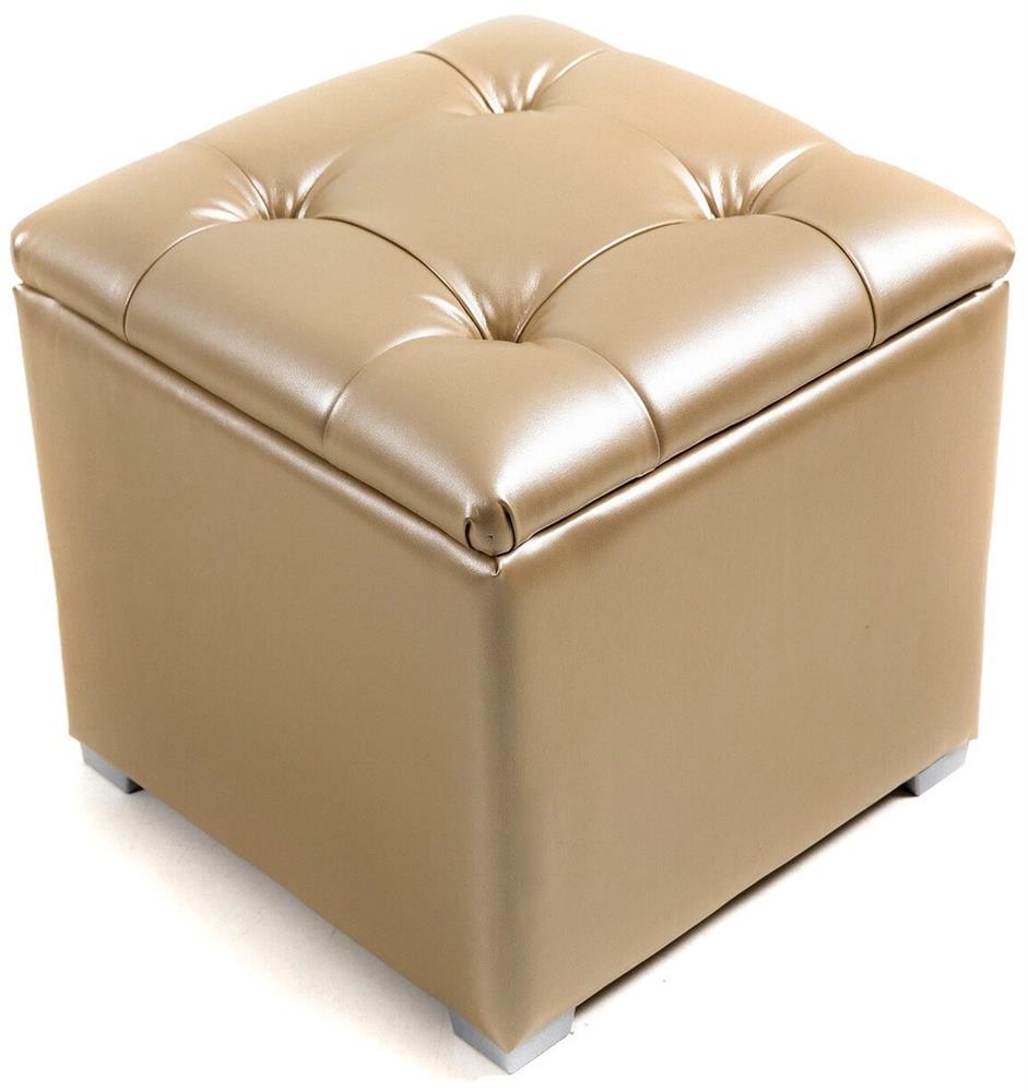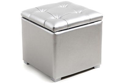 Пуф выполнен в классическом стиле с каретной стяжкой на сиденье.Ножки пуфа усиленные пластиковые серебристого цвета. Сиденье пуфа открывается.Под сиденьем большая и удобная ниша для хранения. Размер Ш х Г х В 460х460х450