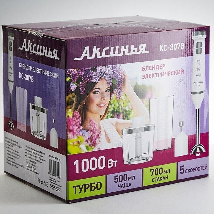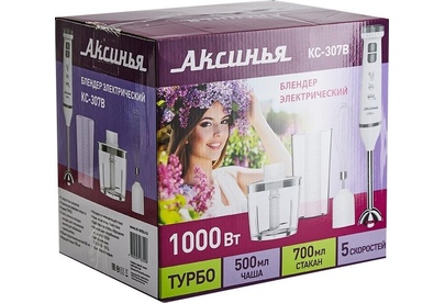 Блендер АКСИНЬЯ КС-307В белый с серым: 1000Вт, нож из нерж. стали,2 скорости,"Турбо" (Россия)(6)